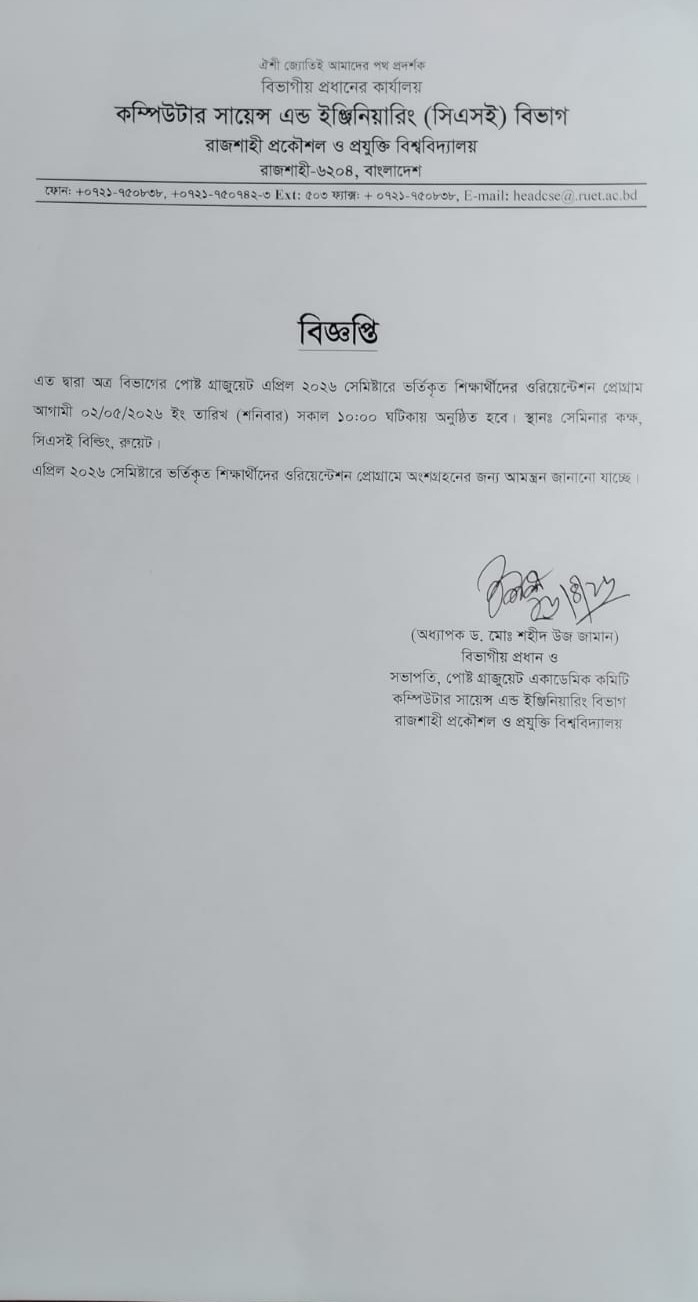 Undergraduate admission test result (session: 2025-26) is published now.